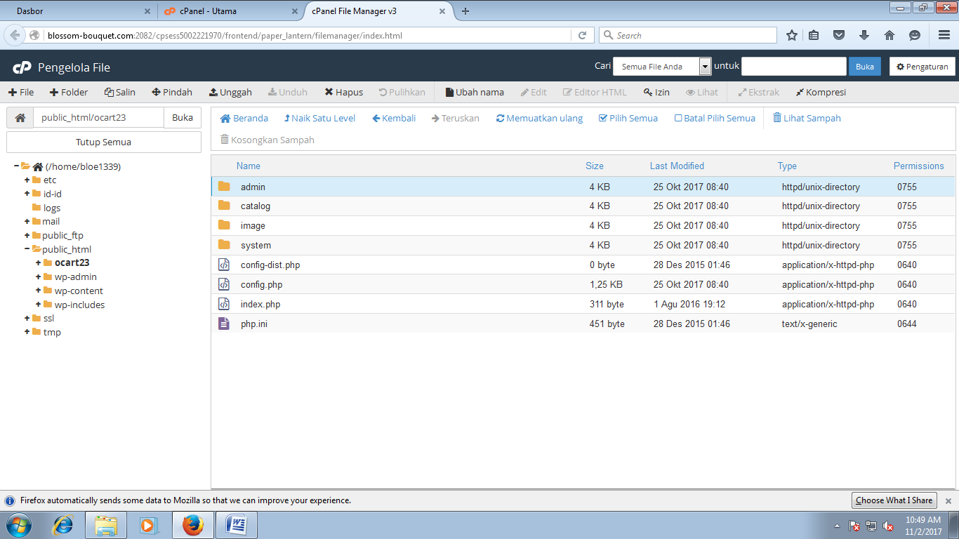 directory languange unggah file bahasa indonesia sesuai versi Open Cart yang